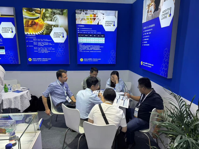 展會(huì)期間,德國(guó)ACL集團(tuán)技術(shù)負(fù)責(zé)人親臨現(xiàn)場(chǎng),與翁開爾化工團(tuán)隊(duì)一起為客戶朋友們講解金屬加工液助劑等產(chǎn)品。